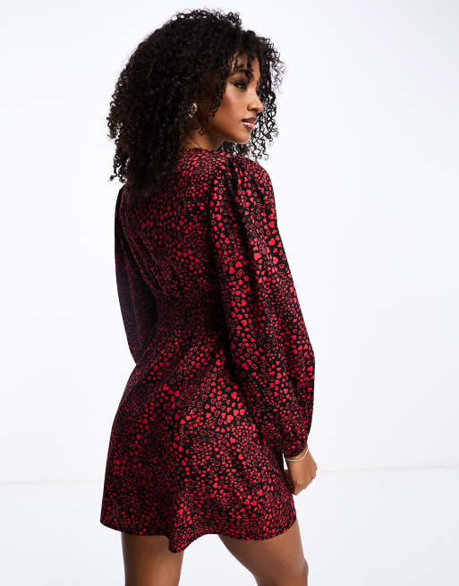 Wednesday s Girl Vestito corto rosso e nero con maniche a palloncino e stampa di cuori Very well made.