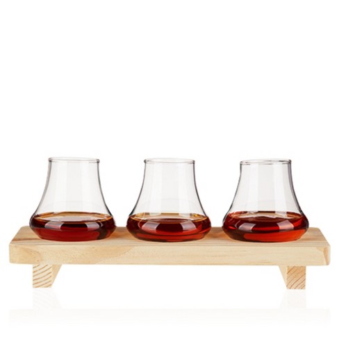 True Spirit Tasting Flight Kit Liquor Glasses With Wooden Serving Very well made.